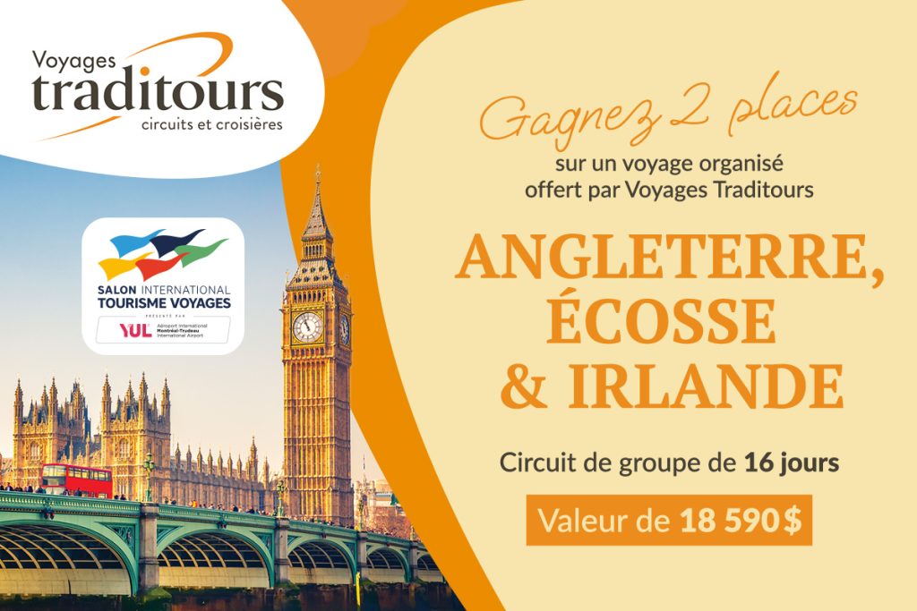 Voyages Traditours, en collaboration avec le Salon International Tourisme Voyages, vous offre la chance de remporter deux places sur un circuit de groupe d’une durée de 16 jours, un prix d’une valeur de 18 590 $.